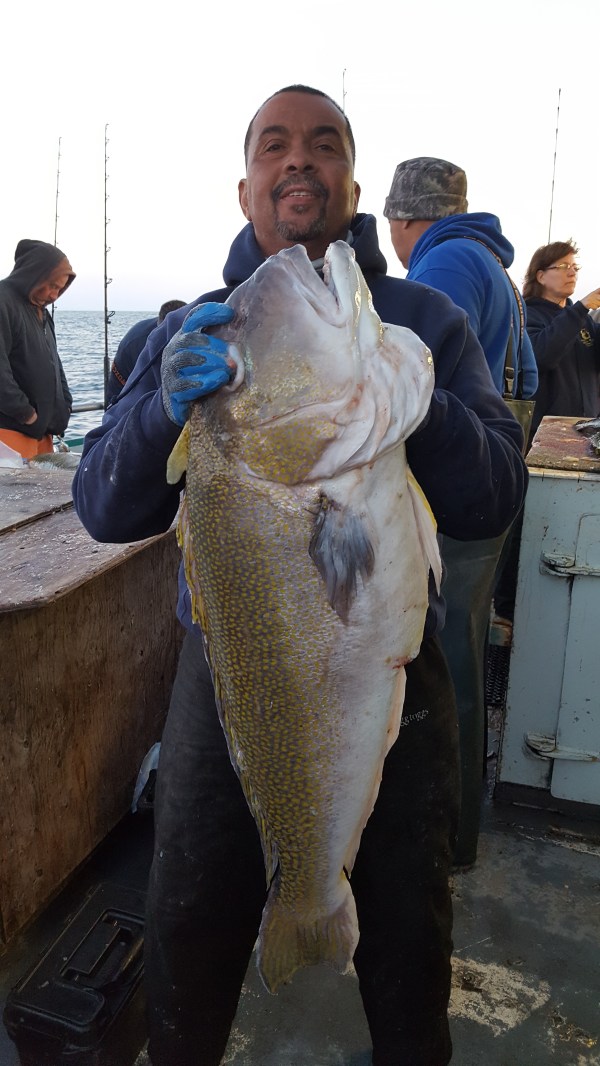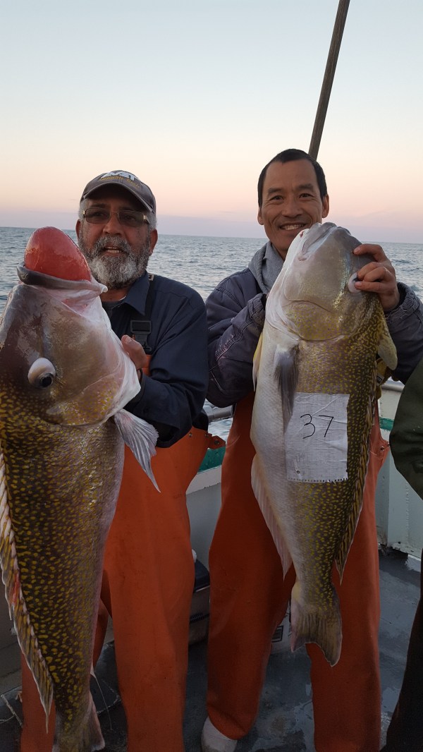 Capt Steven Sr reports that we started out slow with the moon tide from the east and the wind from the south where the drift was not favorable. We found fish here and there with some good drifts and some slow ones. There were mixed size Tile from kitten’s to large and we also had a few Hake in the mix as well. After Day 1 some guys had 15 fish and some guys had 2. Some were hot and some were not! Day 2 we started on some deep water wrecks only to find they were un-fishable due to sea bass. There were 4 to 6 pound sea bass in 420 feet of water with some Pollock mixed in. The Sea Bass took over so we moved to open bottom to find a pick of Tile and Hake. I decided to put a liitle more effort in and it was worth IT! We found LG, XLG, and XXLG Tiles, Hake and XL Cusk. It was Awesome!! Duane Sherard had 3 Tile Fish at 29, 33 and 38. Pete Ferguson had full coolers both days with two 30 pounders. Bruce and Barry Brandow had full coolers both days with a 32 lb and a 35 lb Tile. Mike Xenakis had a 42lb and 49lber. Brian Martin landed a 34lber and 37lber. It turned out to be a very good trip. Capt Steven Sr, Capt Dave, Steve, Gator, Debbie and Justin want to thank everyone for all of their support on these Explorer Trips.