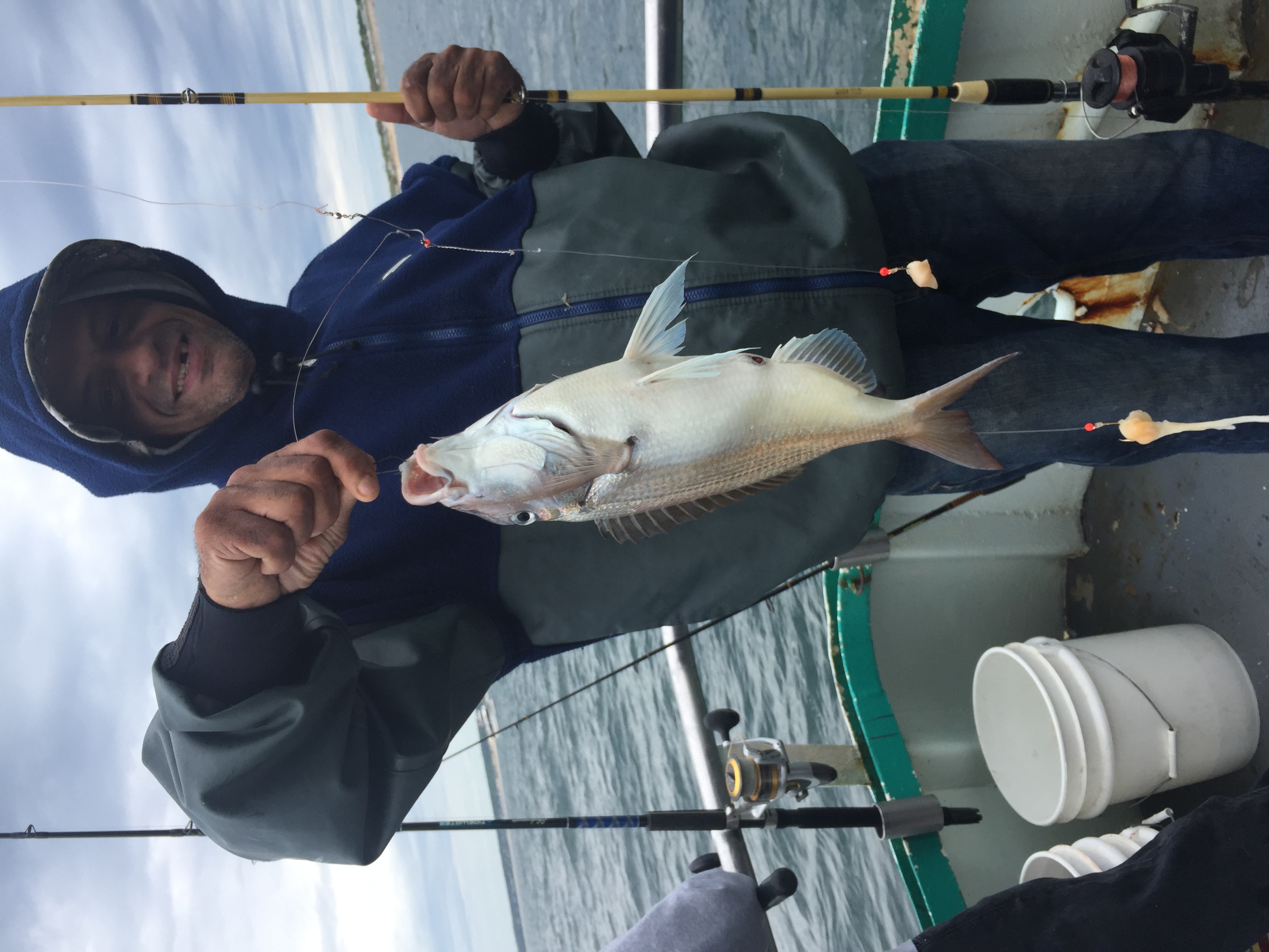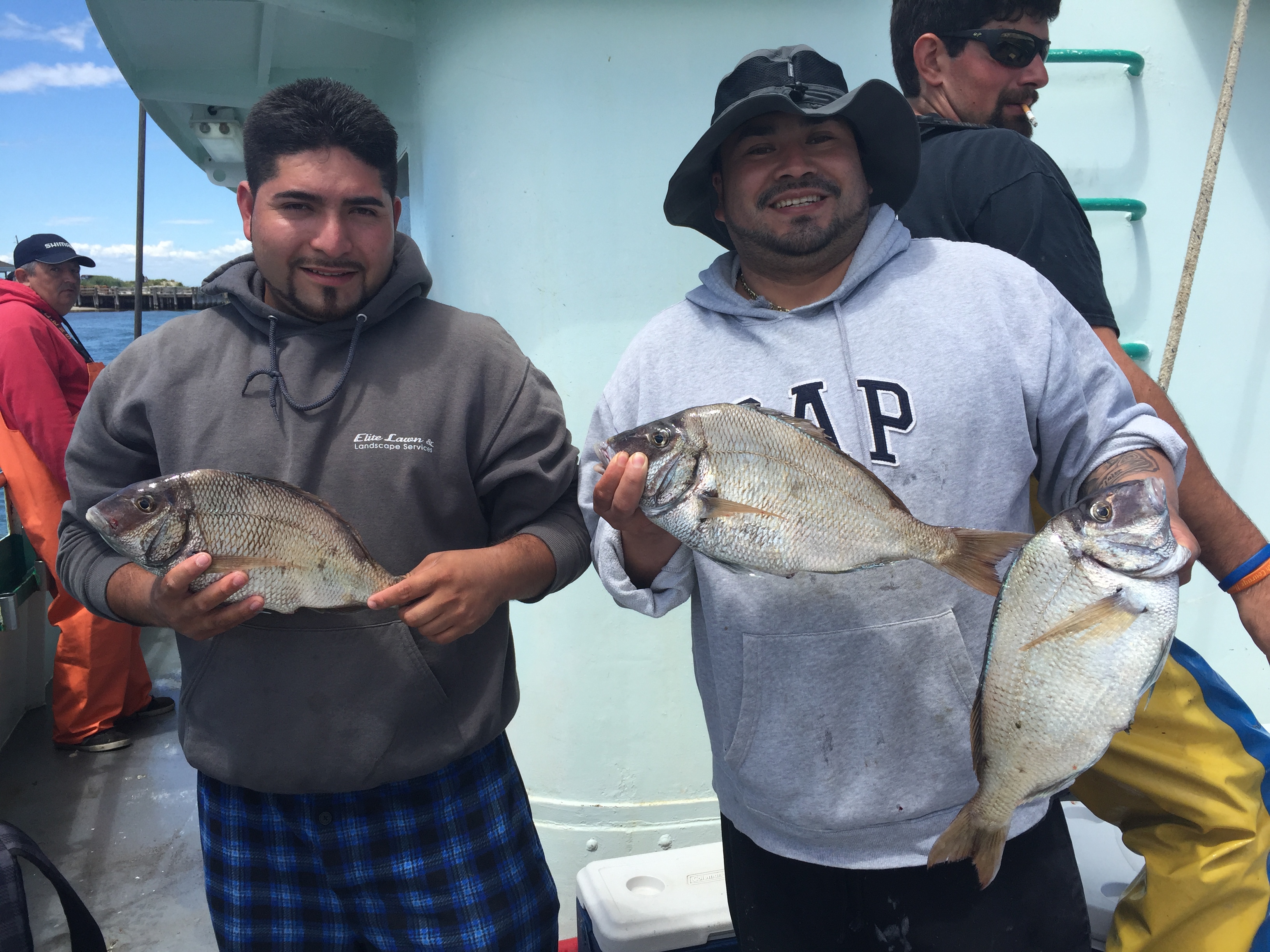 Capt Dave reports a nice catch today with large sized fish. We had good fishing in the morning then it died out. We then took a ride in search of more fish where we found nice sized porgies with a lot of action. We also found some blues and striped bass. There were a ton of throw back sea bass. The pool winner was Cornell Armstrong from Teaneck, NJ with a 4 lb Porgy.