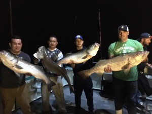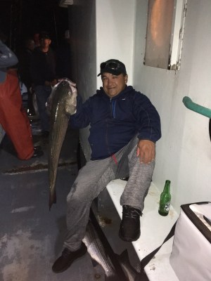 Capt Carl reports another absolutely slam dunk night aboard the Viking Starship Night Bass trip. We had another sold out crowd, and another Full Boat Limit of Striped Bass! The action was just ok, then turned absolutely insane! We did see a smaller class of fish, but no shorts, and plenty of fish with some bigger fish towards the end of the night. Everyone on board went home with a delicious Bass! First place went to Sam Kelly from Southampton, NY with a 36.7 pounder, and second went to Christos Farantatos from NYC, NY with a 34.3 pounder. What a night!!