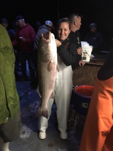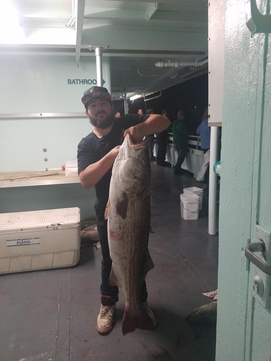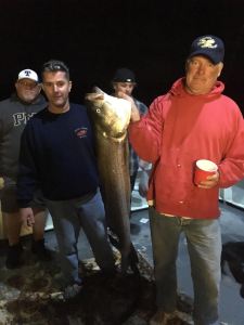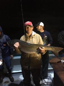 Capt Bill reports a fine night of fishing on the Viking starship. We had plenty of action, and tons of bites, and ended up with a respectable catch. There were many fish lost with many big ones landed. Tyler Lamaze from Bethlehem, PA won the pool with a 34 pounds Striped Bass and Michael took second with a 31 pounder. Pauly “root beer” was not in the pool but took honorable mention with a 38 pounder.