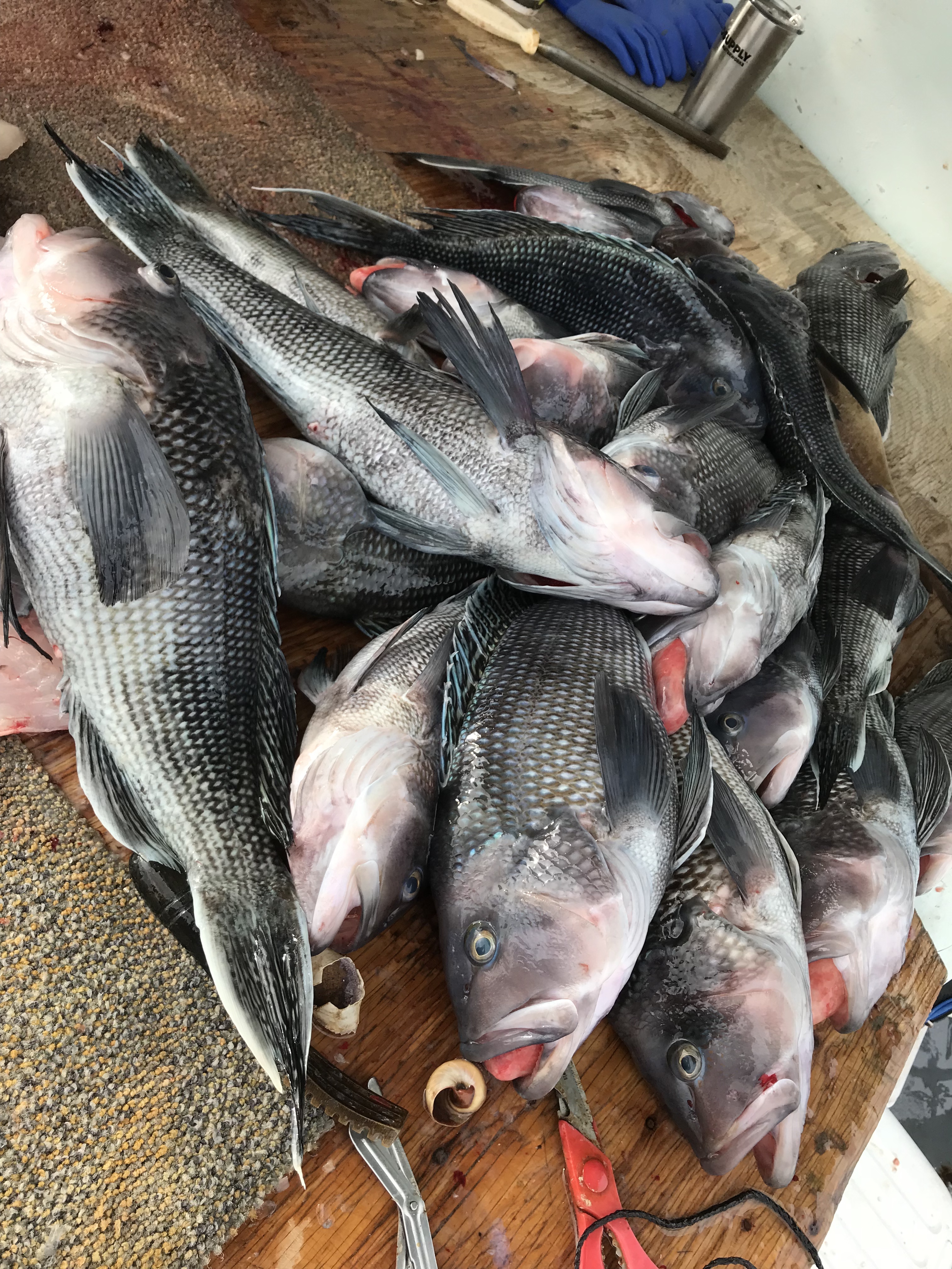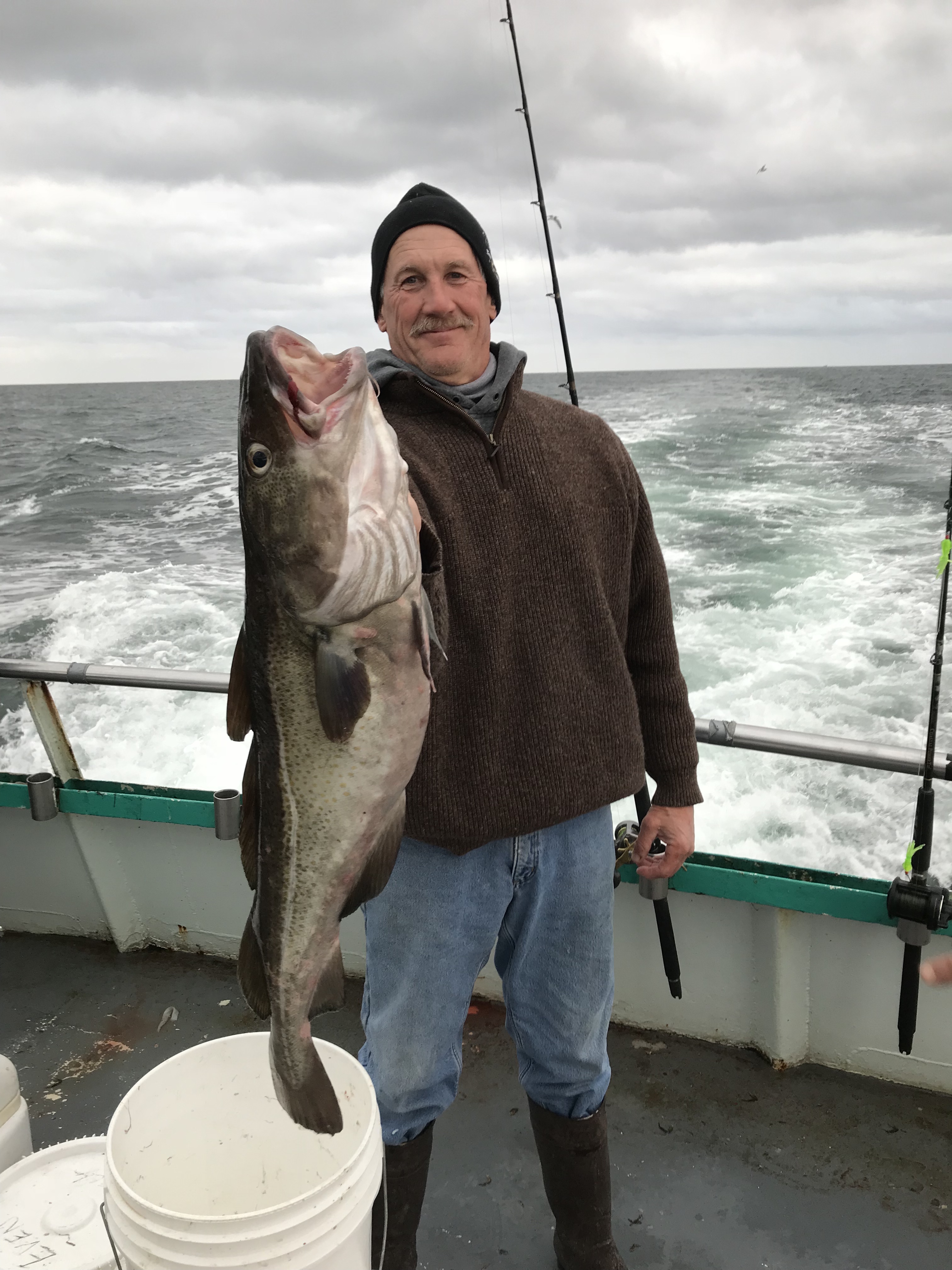 Capt Steven Sr reports good – good fishing today on the Viking Star. We hit two wrecks and every Sea Bass was a SLAMMER! Cod were there up to 18 lbs, we had a 12lb Monk Fish, a 12 lb Amber Jack, some Bluefish, etc…. We counted up to 13 different species! A great time was had by all!! Stan Ducak from Montauk was the pool winner with an 18 lb Cod.
