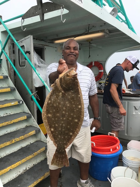 Capt Dave G reports a very good morning of fishing aboard the Viking Star. We had pleasant conditions despite the heavy fog, and made several nice drifts. We ended up with nice sized keeper Fluke, SeaBass and Porgies. The first place pool winner was Ronnie Boyd from Jamaica, Queens with an 8.75 lb Fluke. The second place pool winner was Ed from New York, NY with an 8.55 lb Fluke.