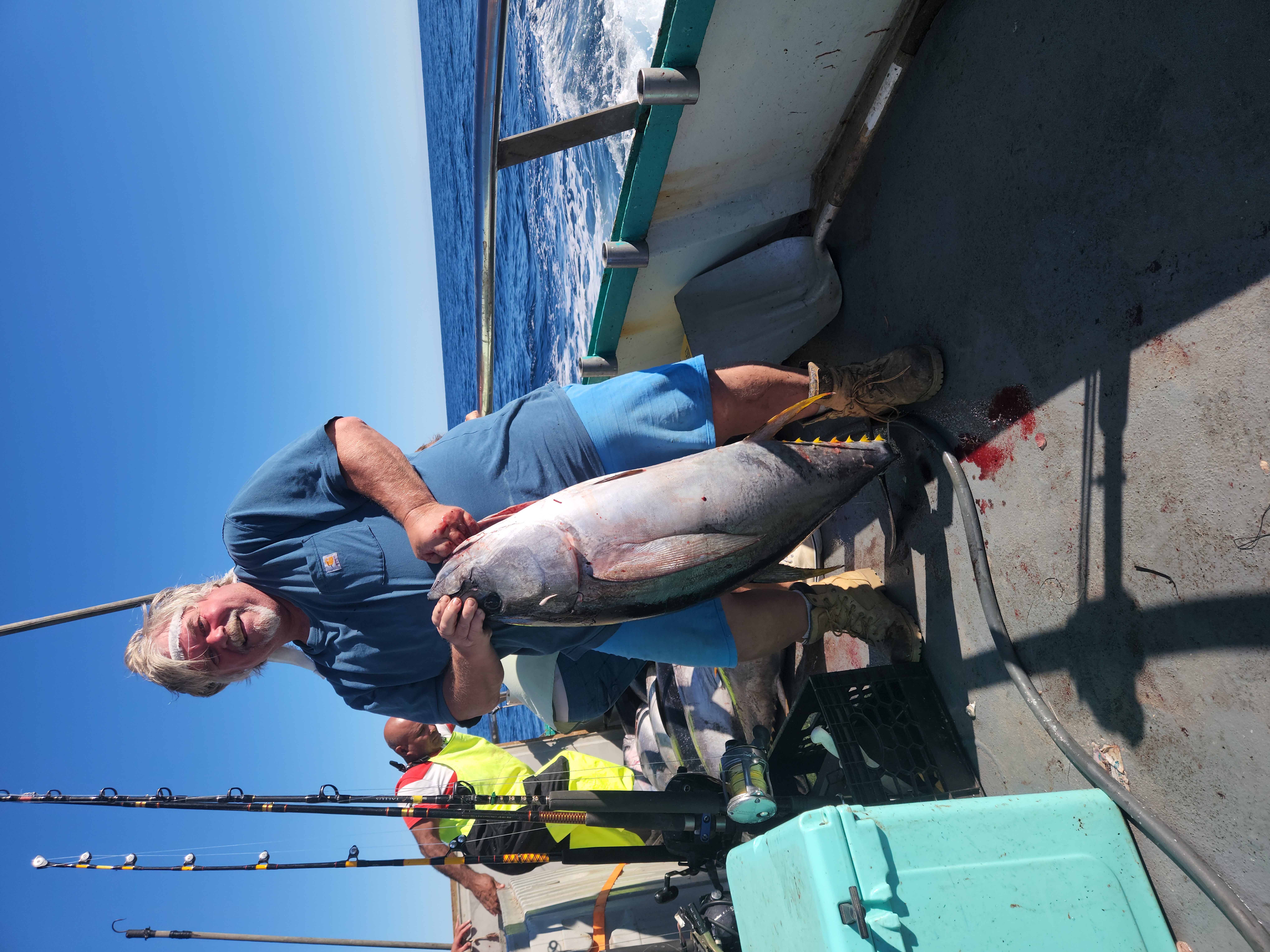 We steamed off from there to dig in on a very productive Tuna report. We were definitely not let down. Sun up on our second day brought EPIC Yellow Fin Tuna action. Big Tunas from 50-60 pounds were common coming over the rail. Multiple fish on at almost all times throughout the day. Free swimming Yellow Fin Tuna circling the boat for hours, it was a bail job. We kept the action going for as long as we could before reaching our limit and stuffing the boxes!!