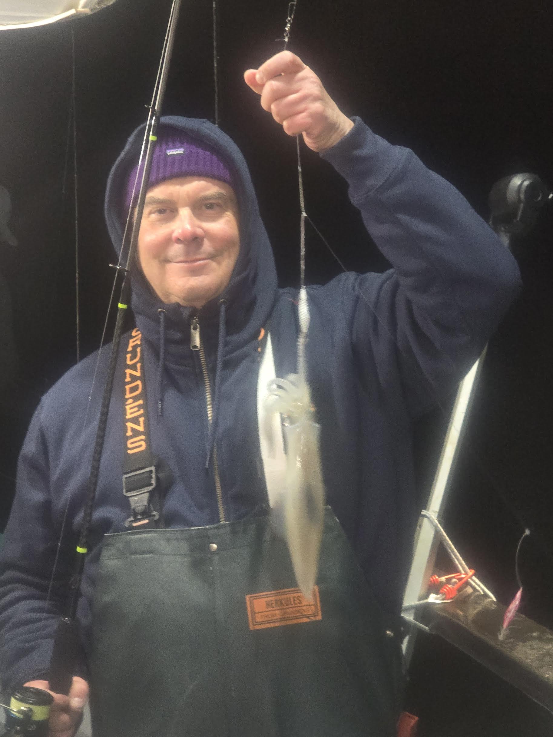 Captain Carl reports a slower night on the Squid grounds. We caught a couple here and a couple there, with the last hour of the trip being the best shot of them, but all in all it was a slow grind. Maybe because of all the rain and run off from the storm on Thursday. We will be back out there tonight to give it another go and hope for better results.