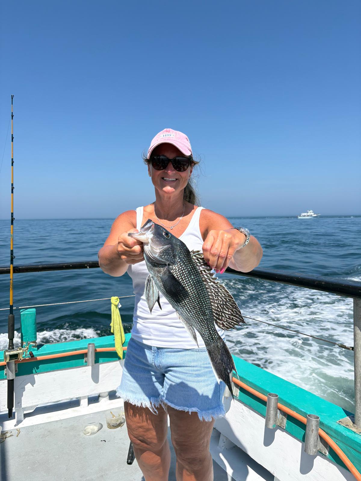 Captain Carl reports a beautiful morning today for our half day fishing trip. We caught plenty of the usual suspects of Fluke, Sea Bass, and Porgies, but the keeper ratio was down today. Plenty of action, just not that many keepers.